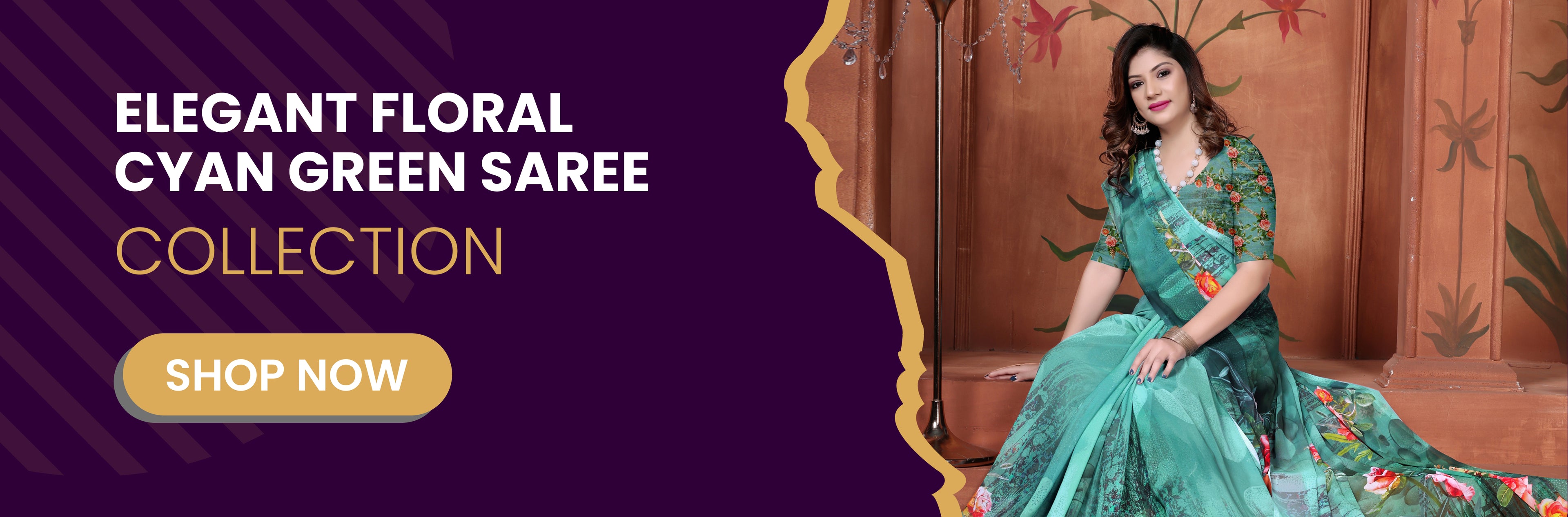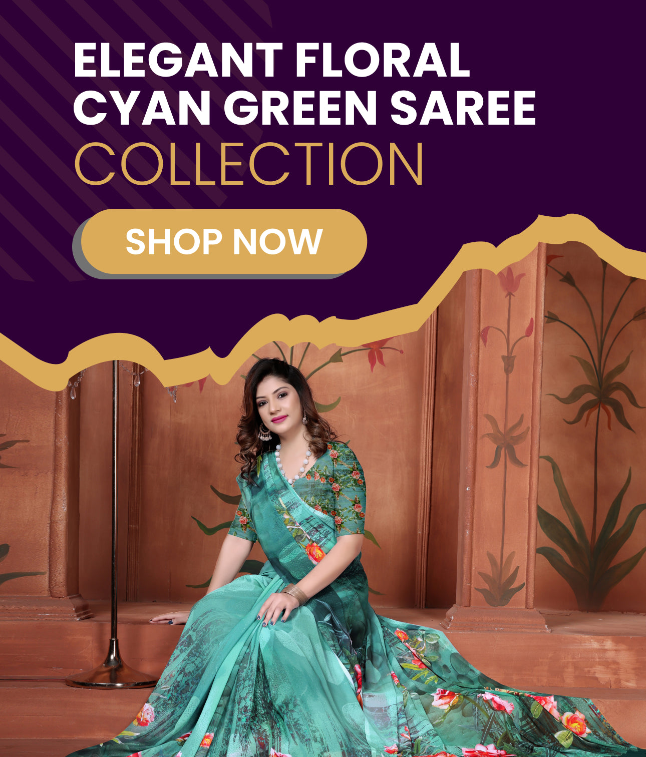 Elegant Cyan Green Floral Saree for Women - Latest Daily Wear Trend