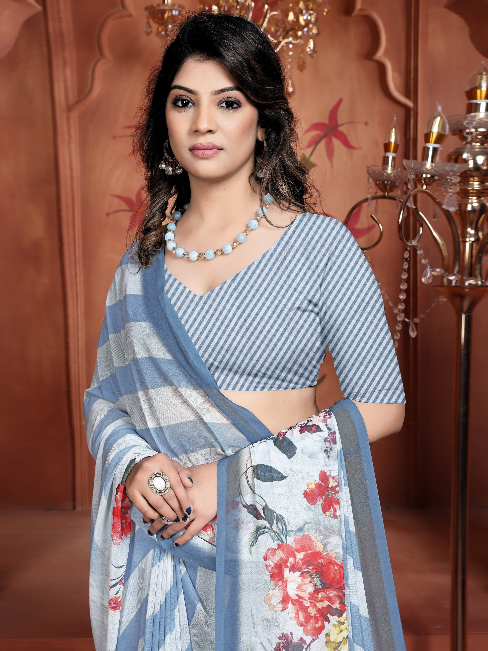 Elevate your ethnic style with this exquisite georgette saree adorned with vibrant floral prints.