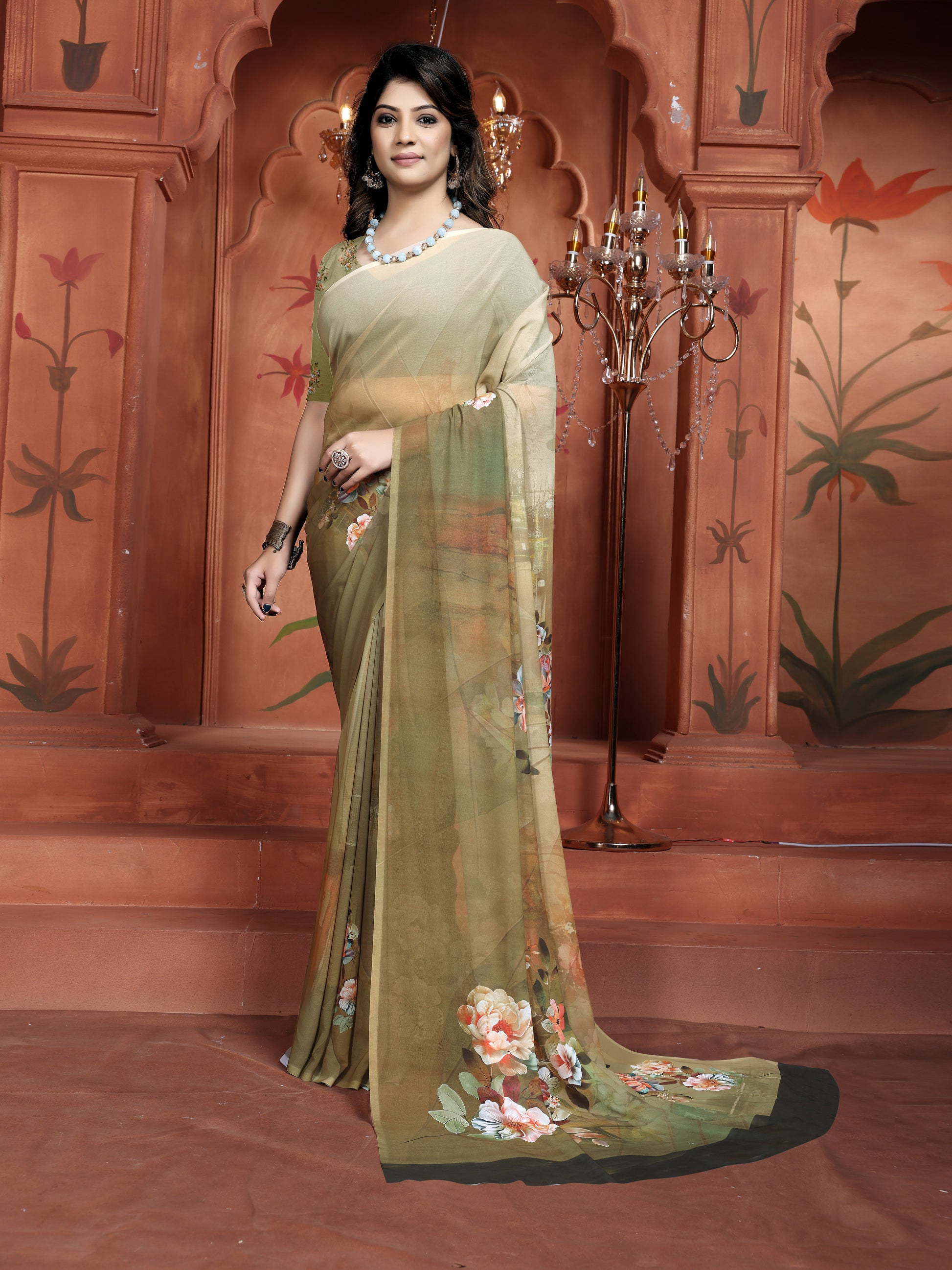 Elegant Green Floral Saree for Women - Designer Casual Daily Wear