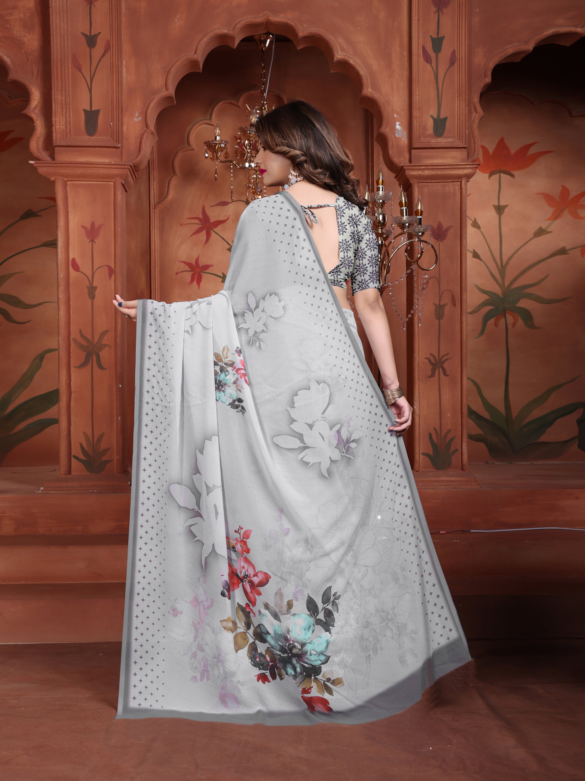 Elegant Grey Floral Printed Saree for Women - New 2025 Trend