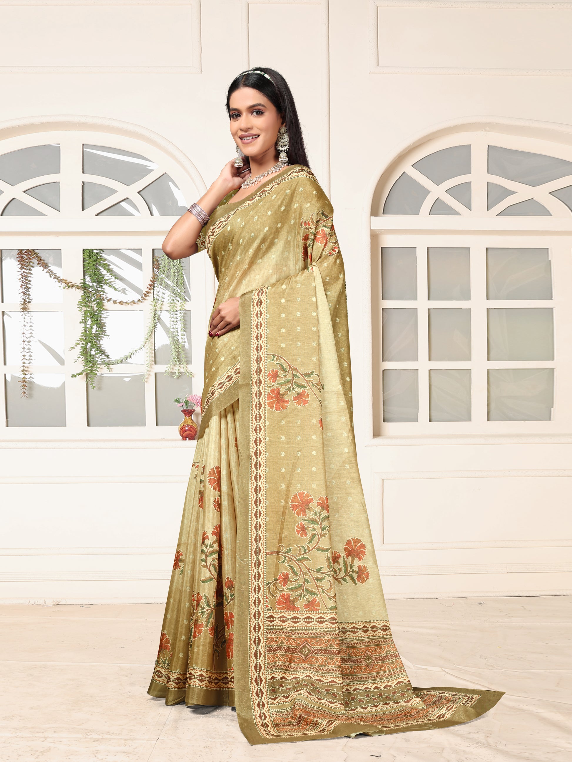 Mustard Brown Dolla Silk Printed Ethnic Saree Casual Daily Festive Wear
