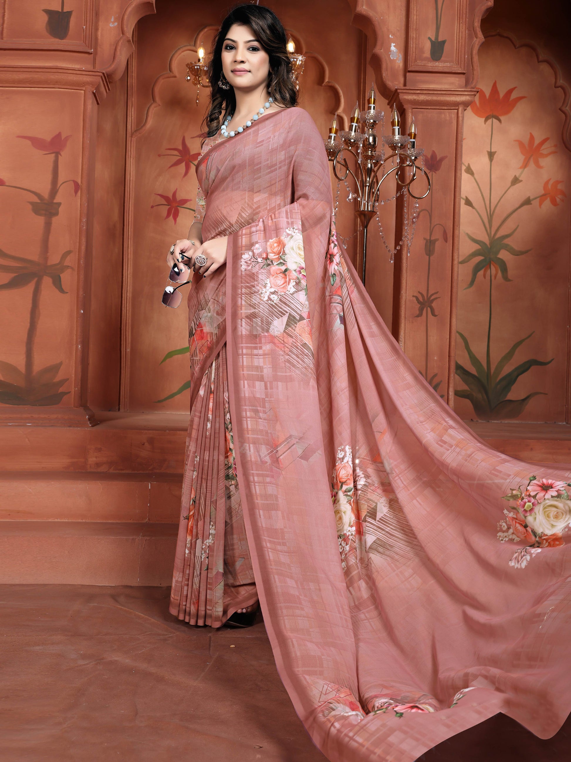 Elevate your ethnic style with this exquisite georgette saree adorned with vibrant floral prints.